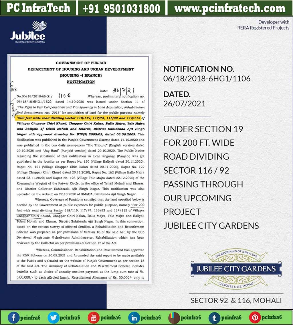 jubilee city garden mohali is located in the heart of Sector 92 and 116 Mohali. jubilee city garden mohali has an plot size of 100 and 150 sq yard near Landran Road . Jubilee garden city mohali is near to Gillco Valley Sec 121 and Sector 88 Mohali.