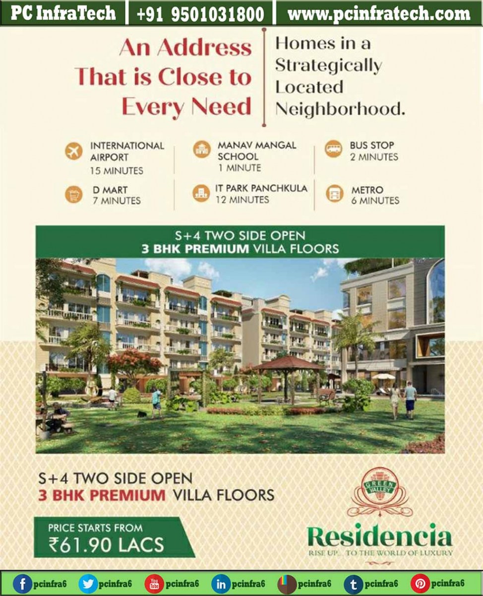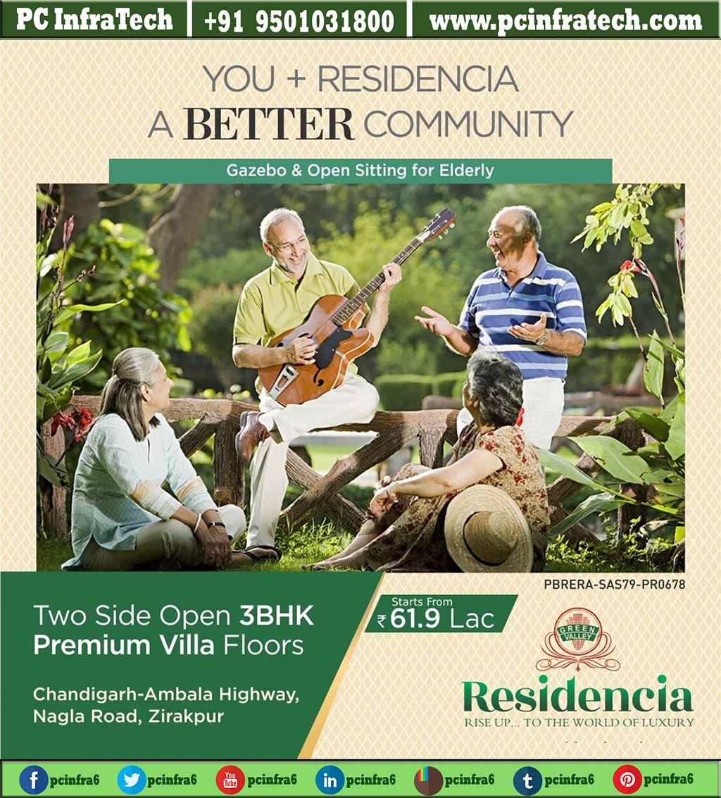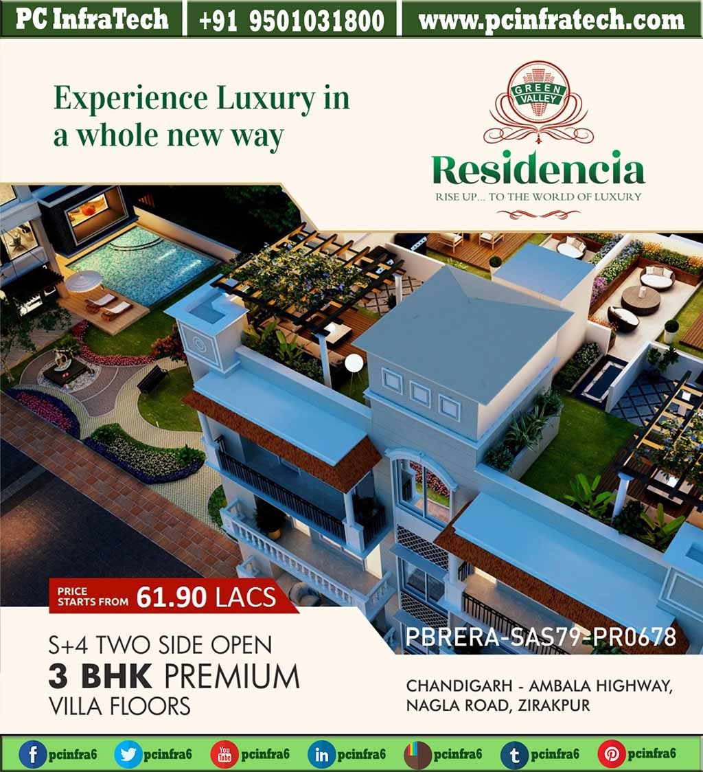 Green Valley residencia floors is offering 3 BHK Low Flats in Zirakpur. Residencia spreads over a total area of 5 acres and has 70% of open spaces. Green Valley residencia floors is designed to keep royalty and the finest Architecture in mind.
