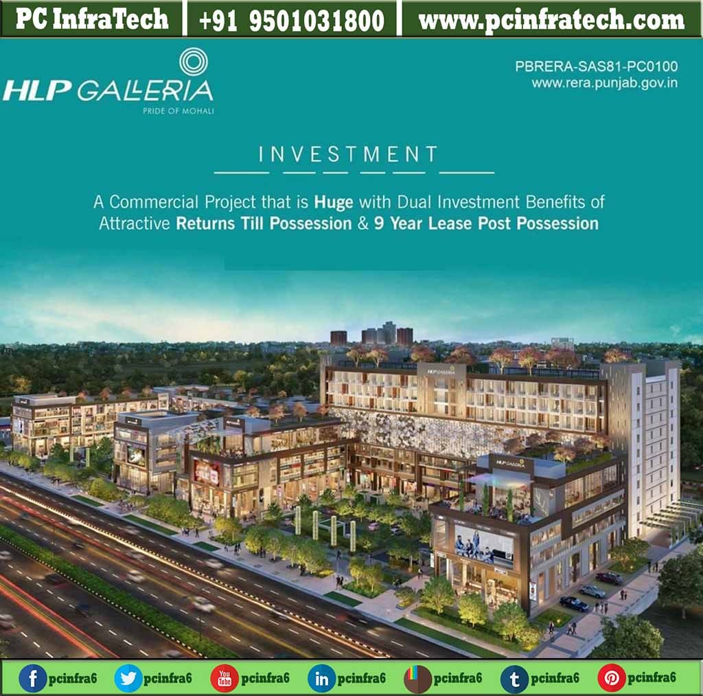 HLP Galleria presents Cinemas, Bay shops, Booth, SCO, Office Space and Food Court in Sector 62 Mohali. HLP Galleria First Project Of Mohali With Surface and Basement Parking , Double Height, 12 Ft Corridors, G+3 With Lifts.
