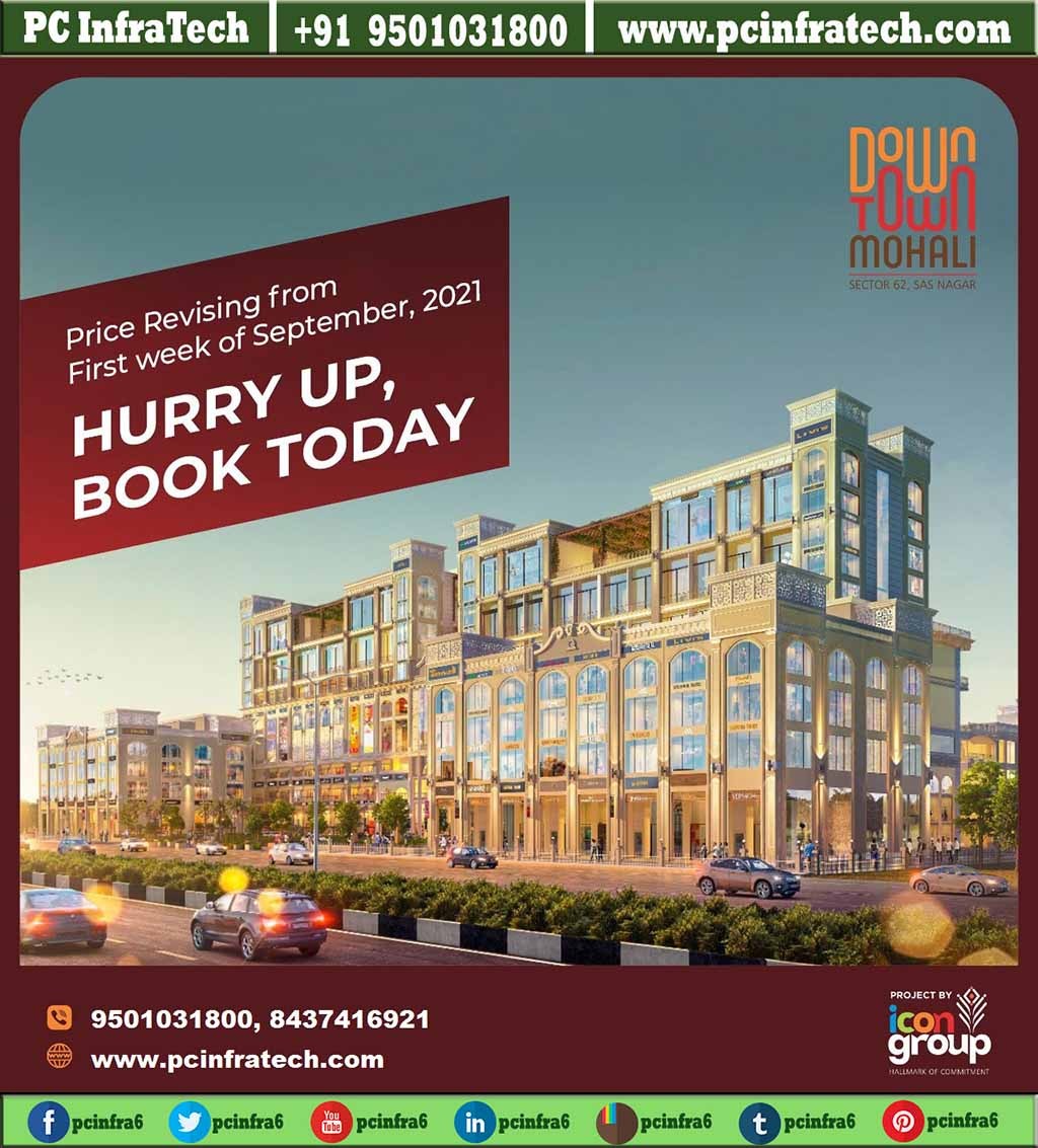 Downtown Commercial Project by Icon Group. Investment in Mohali Prime Location Commercial Property Showroom, Bay Shops, Retail/Office Spaces, Food Court ETC. Strategically situated in Icon Group Phase 7 & 8 Traffic Lights