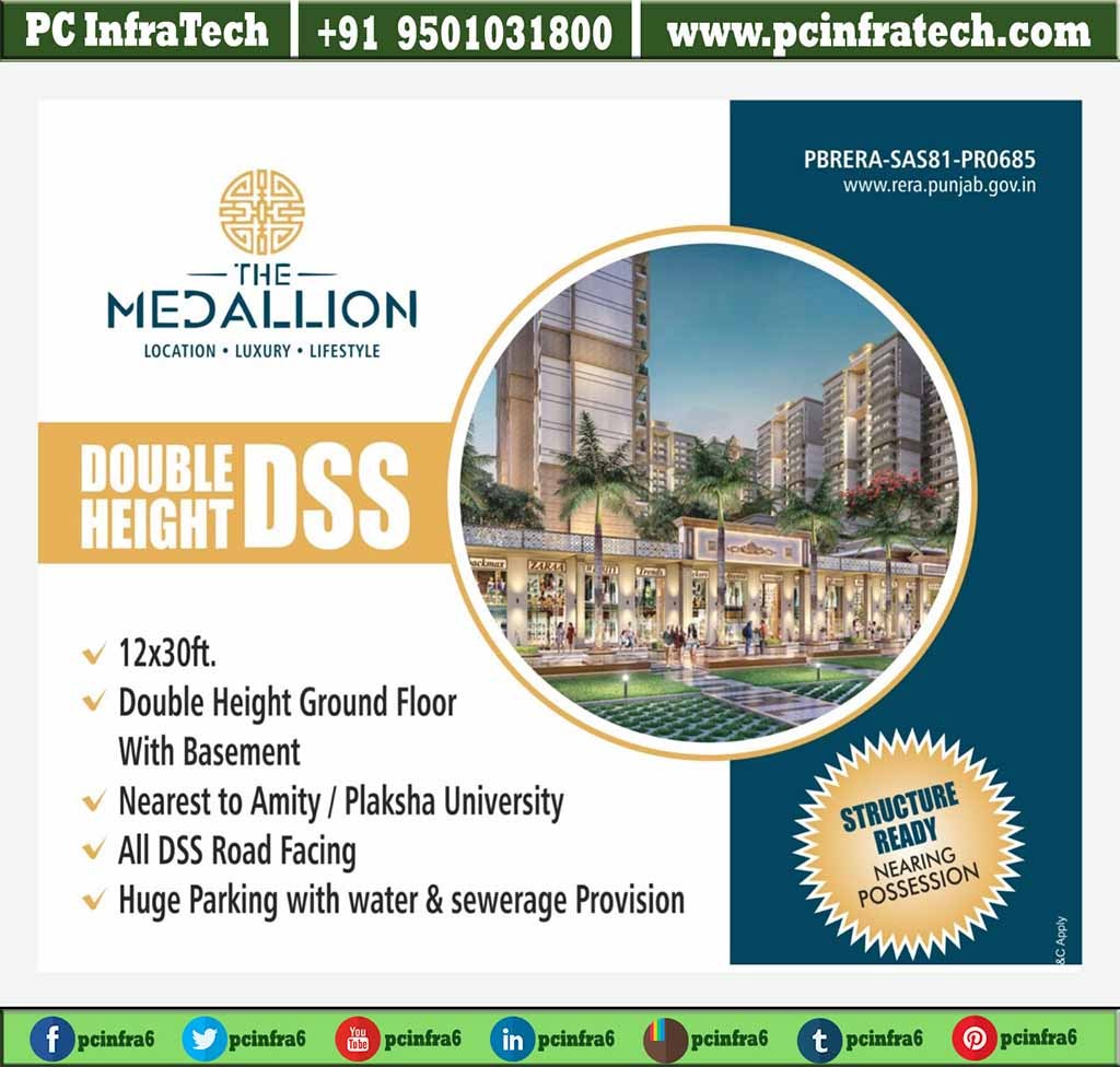 40 gaj dss for sale at prime location in the medallion in it city 82a Location. Large front 12* 30. Ground 40'feet height +basement. medallion shops mohali is Near to amity university and manav rachna international school