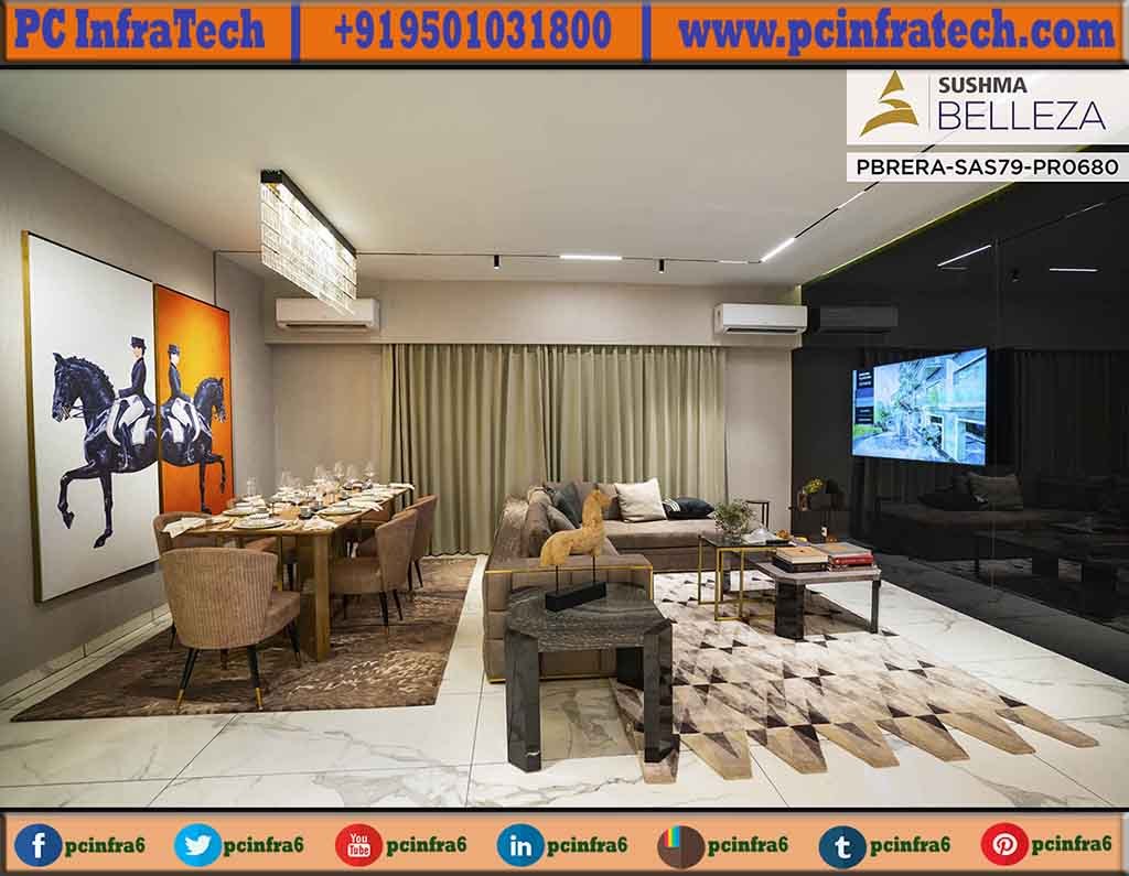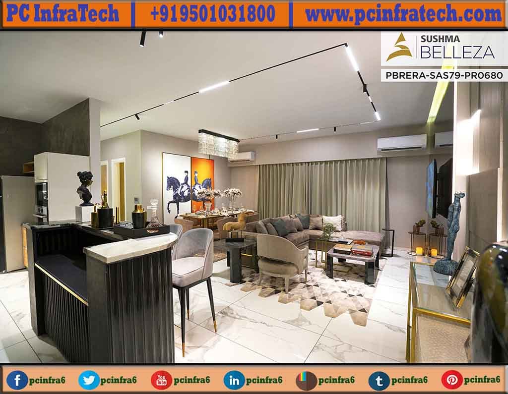 Sushma Belleza Zirakpur is a Super Luxury and Gold Class Residential Property in Zirakpur by Sushma Buildtech presenting Exceptional luxuries and Outstanding amenities. Sushma belleza sample flat has a separate dry and a wet section in the kitchen. This is an upcoming residential project located in the heart of Zirakpur, on 200 feet wide International Airport Road, Chandigarh. The location of this Property in Zirakpur is very prime as it is easily accessible from Delhi, Haryana, Himachal Pradesh, and Punjab.